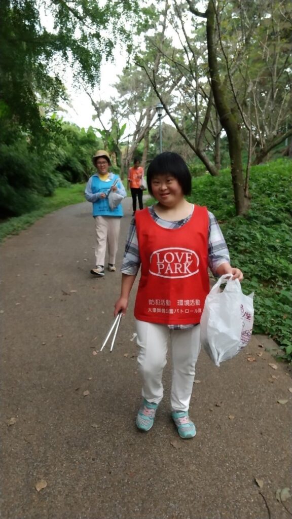 障害者施設による環境活動時に【LOVEPARK】ビブス